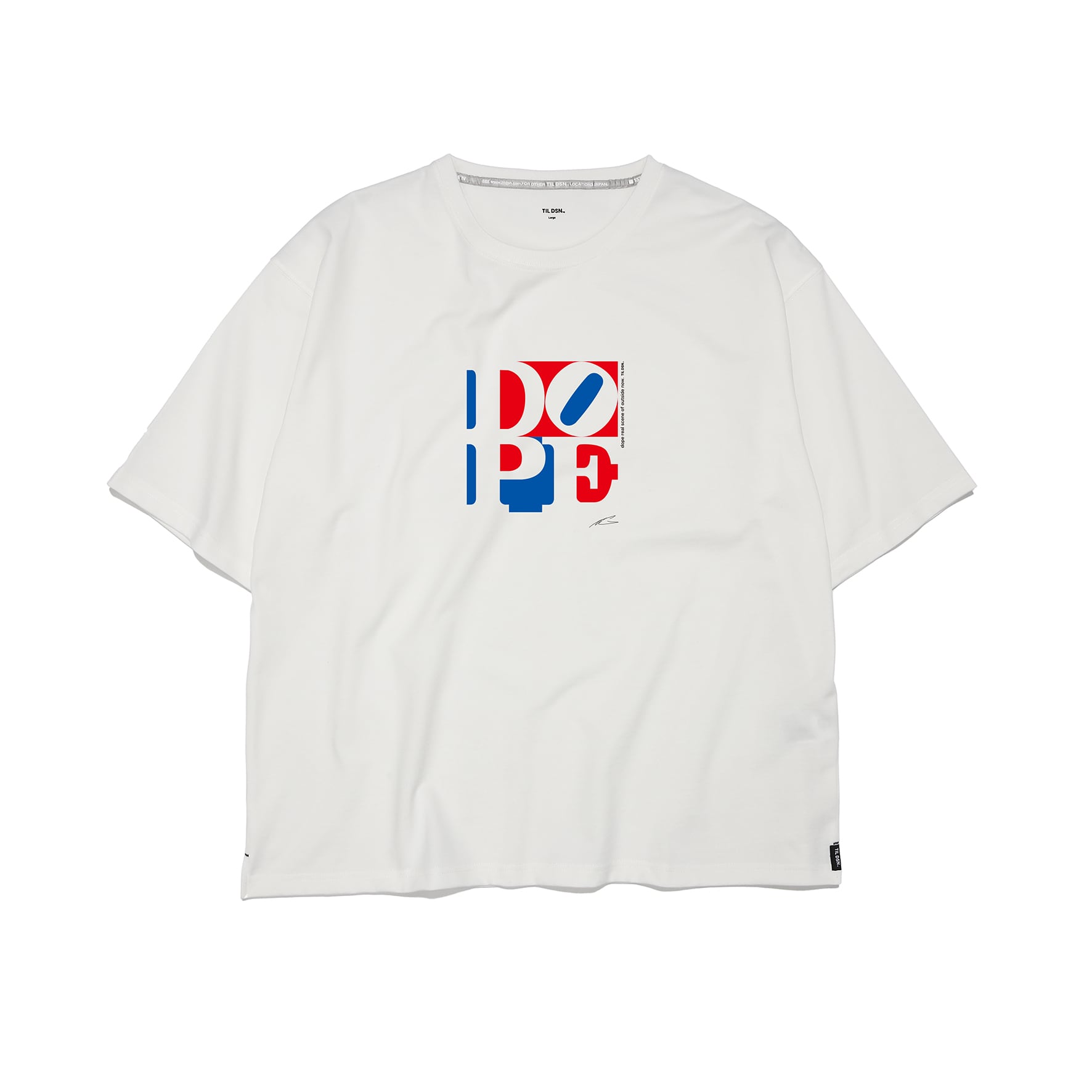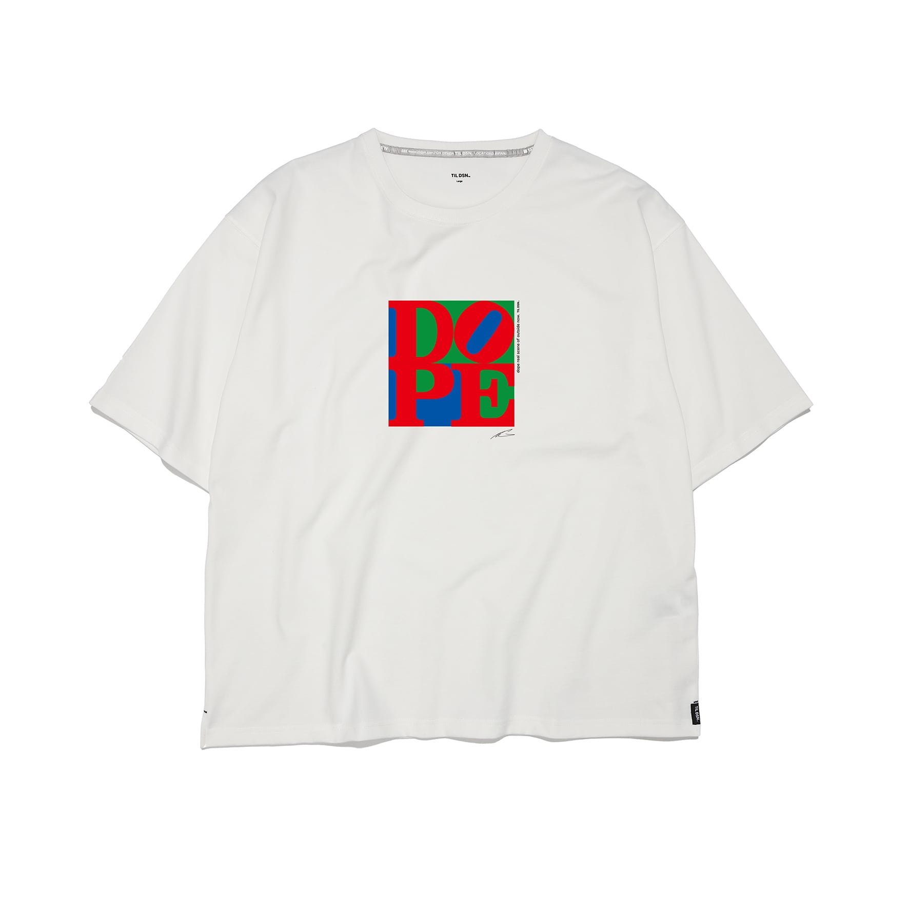 敬愛するN.Yの現代アーティスト、ロバート・インディアナの代表作、「LOVE」、「HOPE」からインスピレーションを得た、DOPE(ドープ)のグラフィックを施したTシャツ。